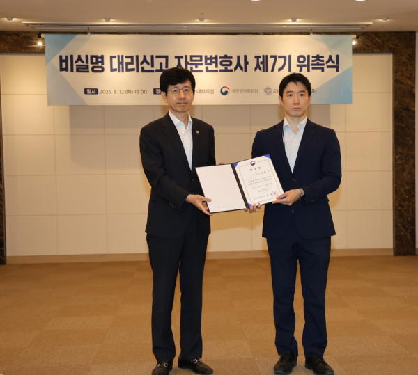 법무법인 위온의 송태욱 변호사는 2025. 8. 12. 국민권익위원회에서 운영하는 비실명 대리신고 자문변호사로 위촉되었습니다.