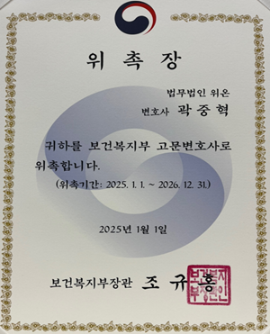 [] [위온소식] 곽중혁 변호사, 보건복지부 자문 변호사 위촉